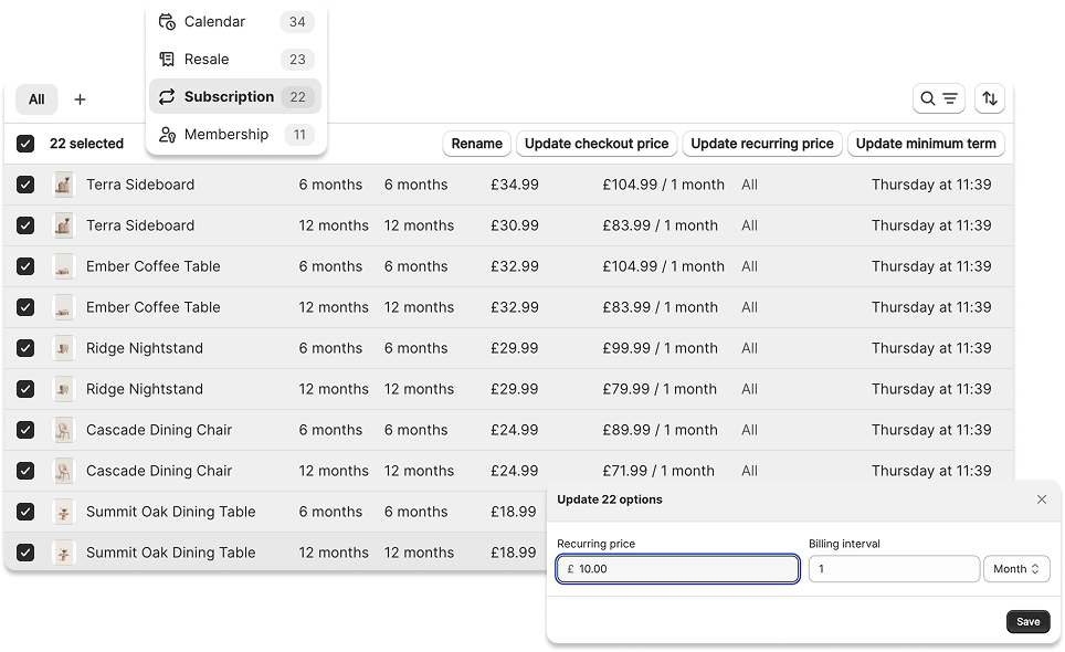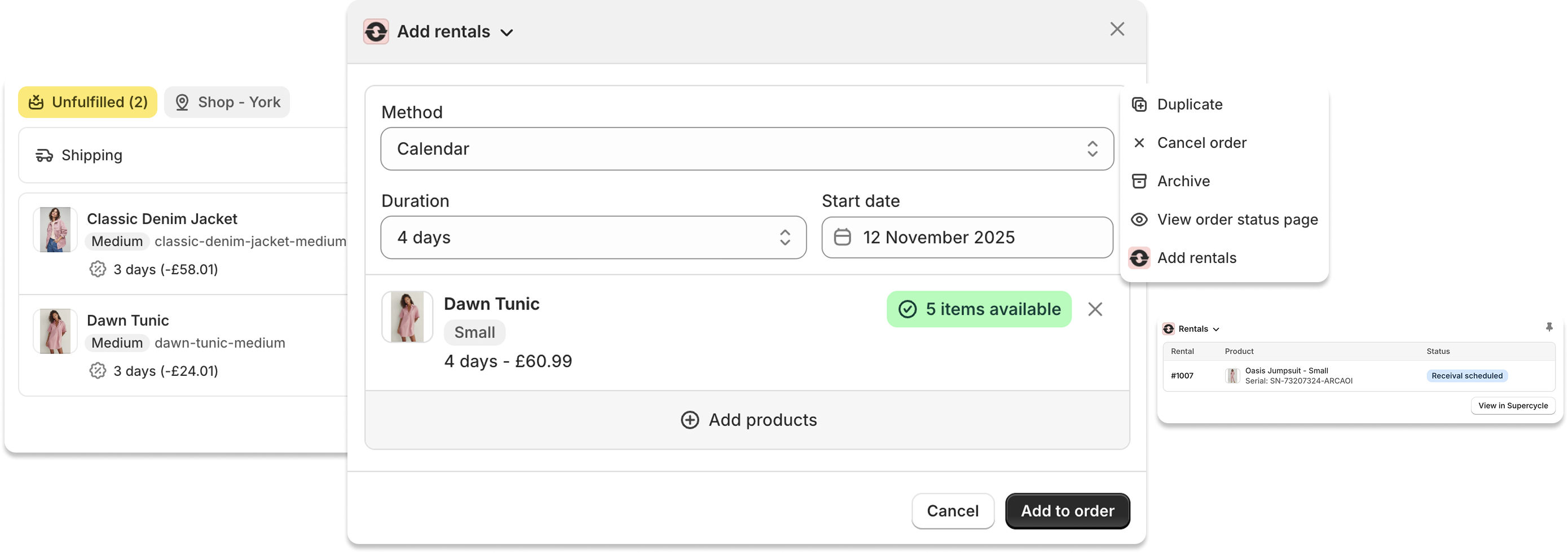 Let renters buy the product they’ve been using, directly from their account. Supercycle updates allocations and admin automatically.